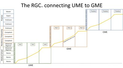 The Resident Growth Chart (RGC) was developed to provide resident physicians with a visual trajectory of their progress. The RGC is an over-arching, holistic evaluation tool that represents the faculty’s shared mental model of growth over time. It is a collection of competency charts that spell out progressive expectations, in narrative form, for residents to strive for, and for faculty to “teach to”. Both the ACGME Milestones and The RGC are modeled after the Dreyfus and Dreyfus "Model of Skill Acquisition" and primed to help institutions adhere to this goal.